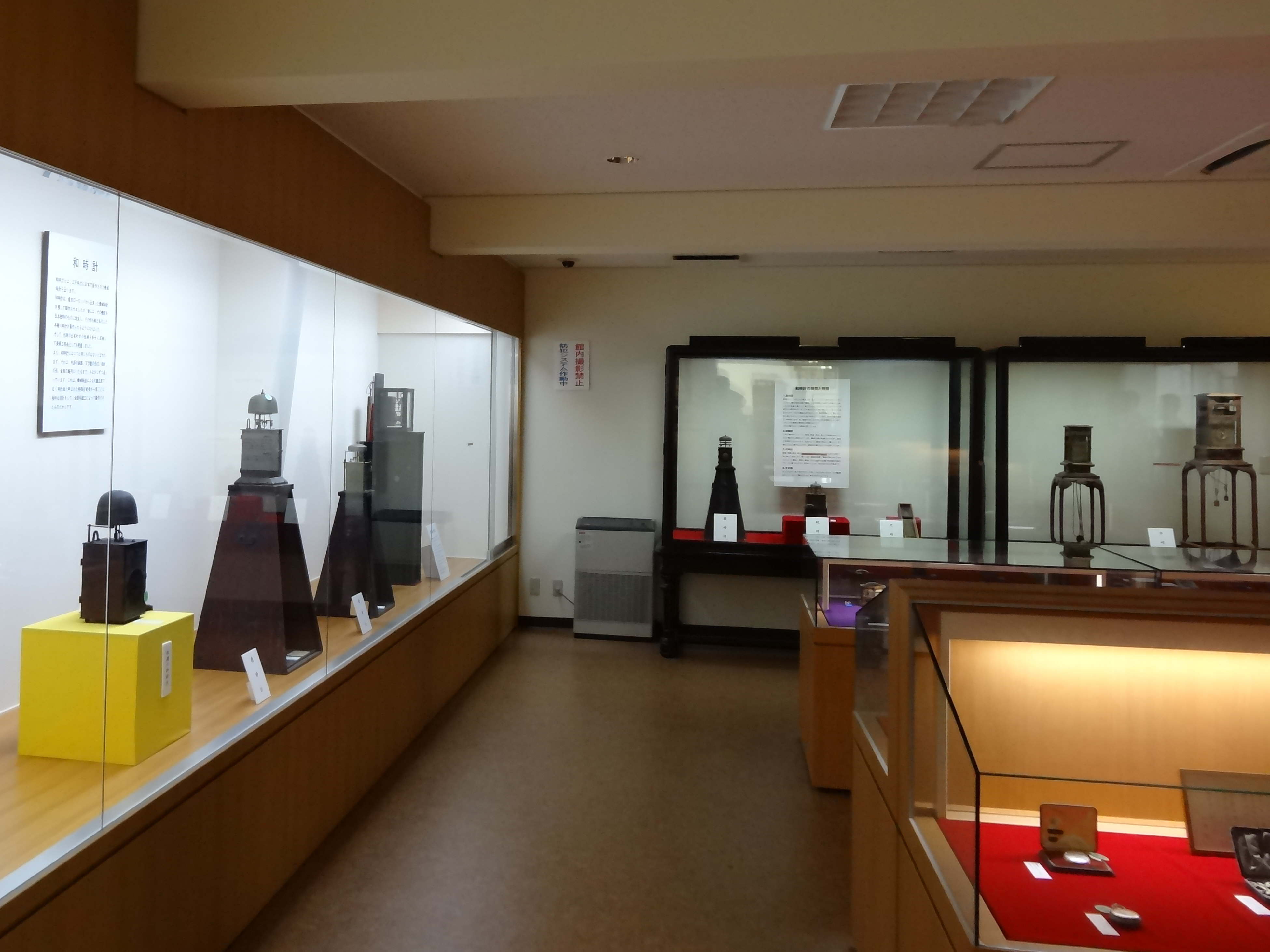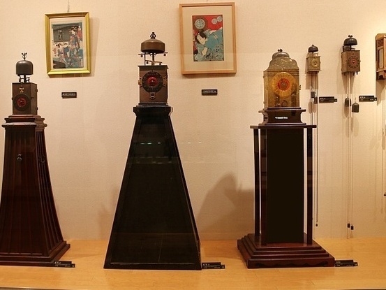 The most extensive selection of Wadokei to view. Here you will see the most amazing display and variety of wadokei within a whole section of the museum dedicated to Wadokei. There are examples that beat the hour and alarm on a Japanese taiko drum, to floor / alcove standing examples, through to pillar clocks, table clocks and personal inro and pocket watches.